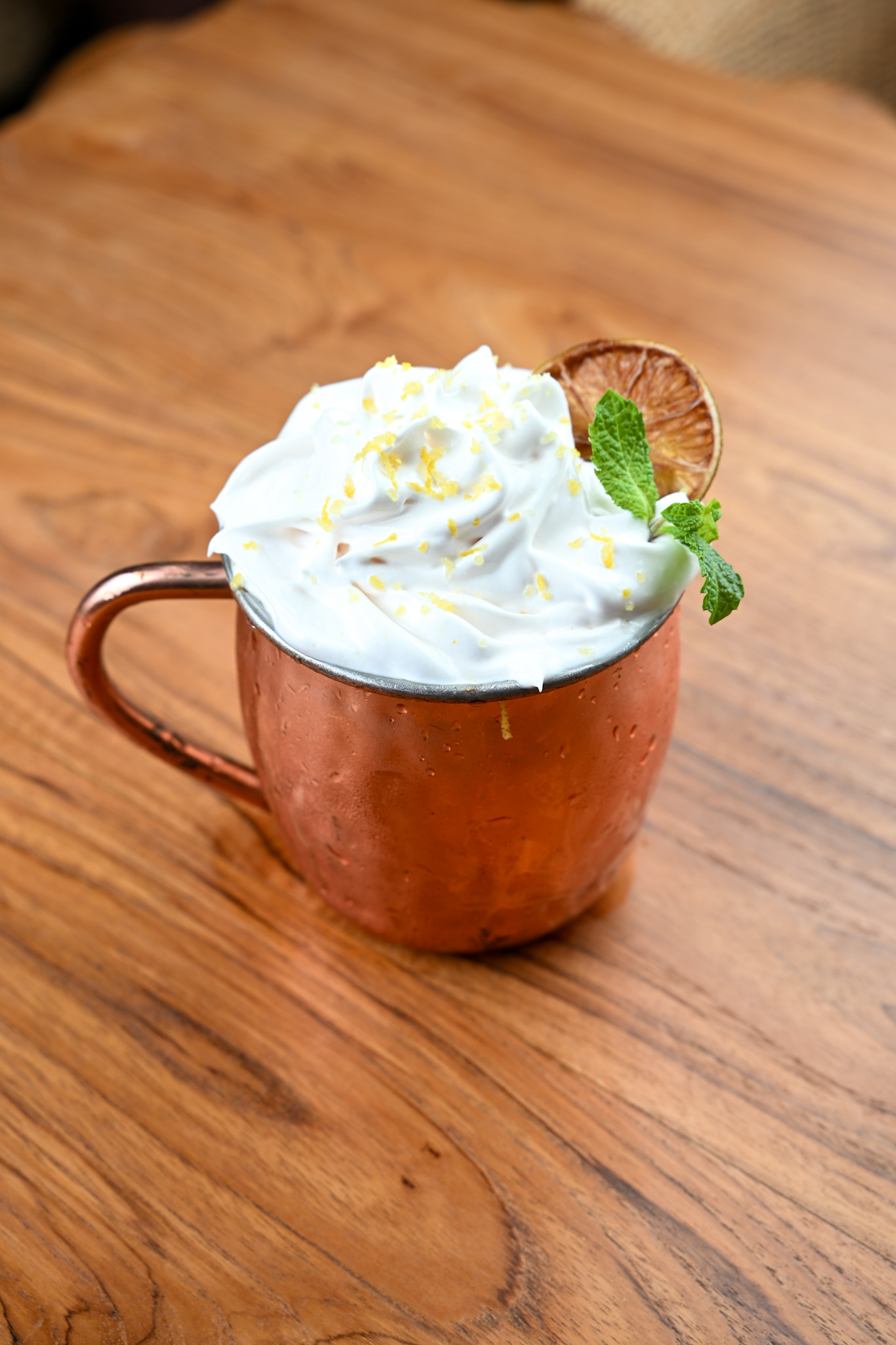 Aperol, gin, limão siciliano, citrus e espuma de gengibre.