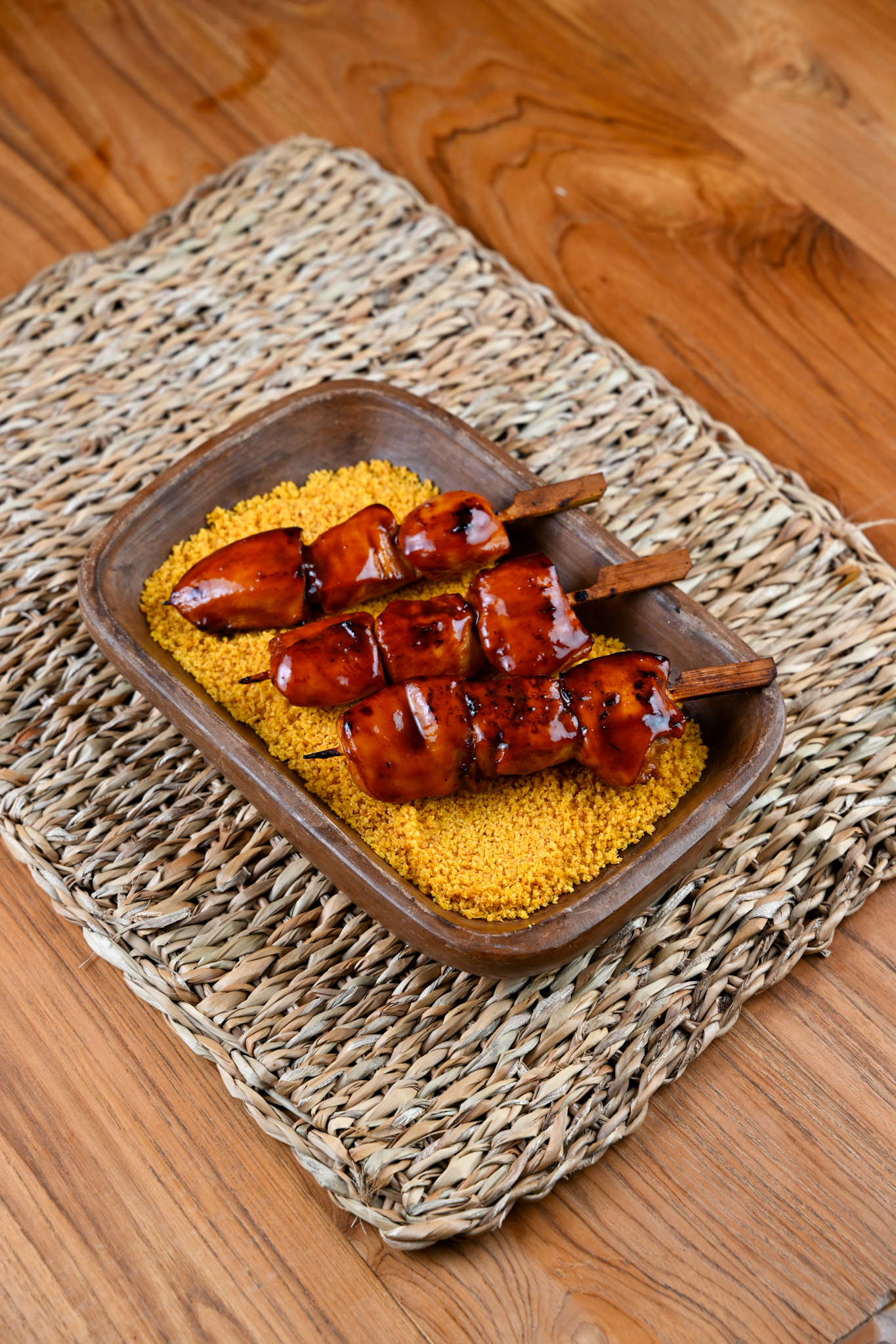 Cubos de salmão marinados em limão pepper e um toque de curry, trazendo frescor cítrico e notas aromáticas marcantes. Grelhados no ponto perfeito para garantir suculência e sabor. Uma opção leve, vibrante e cheia de personalidade.